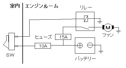 幸田号の夏場対策に電動ファンの手動スイッチを取り付ける。
